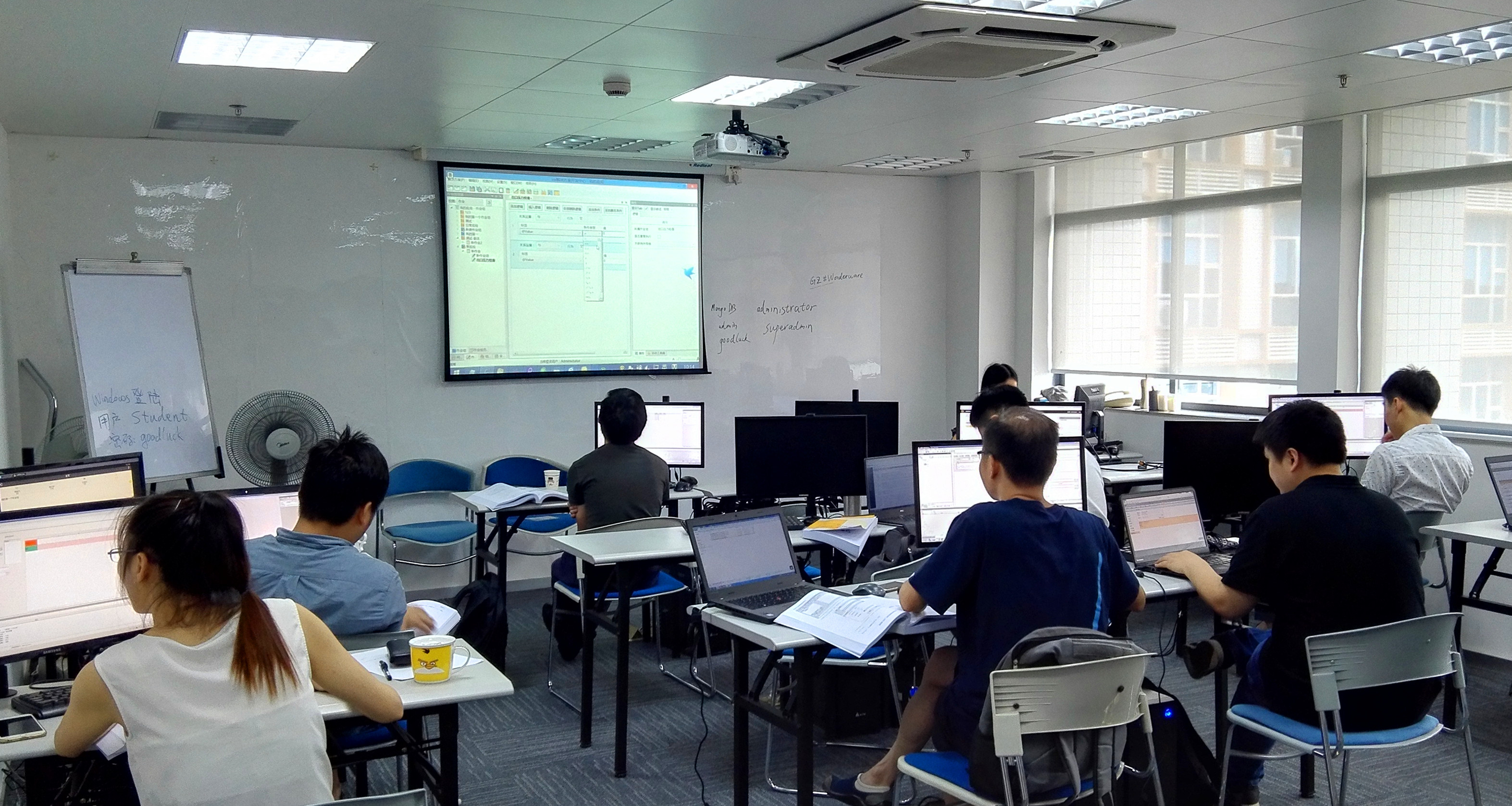 在這次培訓(xùn)開(kāi)展前期,我司兩位負(fù)責(zé)艾動(dòng)業(yè)務(wù)的資深工程師已經(jīng)提前在多功能培訓(xùn)室內(nèi)為每臺(tái)電腦安裝imgenius解決方案開(kāi)發(fā)中心和imgenius系統(tǒng)管理中心,方便上課人員現(xiàn)場(chǎng)聽(tīng)課后的實(shí)際操作練習(xí)。這次培訓(xùn)我司專(zhuān)門(mén)邀請(qǐng)了上海艾動(dòng)的培訓(xùn)講師王老師,同時(shí)也邀請(qǐng)了南區(qū)艾動(dòng)的兩位客戶(hù)——深圳融科集成商和汕尾信利集團(tuán)項(xiàng)目的工程師來(lái)此聽(tīng)講,以及本公司的其他幾位工程師。王老師耐心地為大家細(xì)細(xì)講解相關(guān)的業(yè)務(wù)知識(shí)內(nèi)容,遇到需要實(shí)際操作的顯示部分,她會(huì)為學(xué)員現(xiàn)場(chǎng)投影演示一遍,剩下的時(shí)間留給學(xué)員自己操作演練,同時(shí)我司現(xiàn)場(chǎng)兩位負(fù)責(zé)艾動(dòng)業(yè)務(wù)的工程師也配合為大家解析疑難問(wèn)題的實(shí)際操作?,F(xiàn)場(chǎng)的培訓(xùn)手冊(cè)也是免費(fèi)送給每位聽(tīng)課的學(xué)員,以便課后或現(xiàn)場(chǎng)項(xiàng)目的實(shí)際操作。