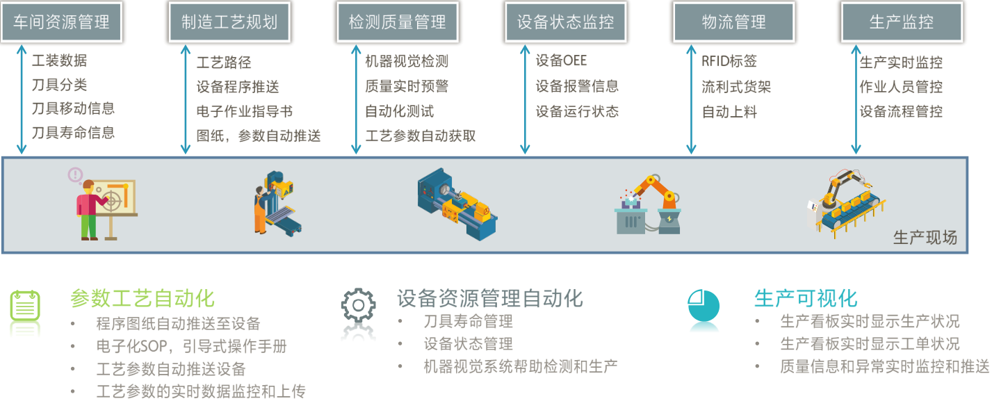 生產(chǎn):數(shù)據(jù)自動收集,實(shí)現(xiàn)無紙化,減少錄入錯(cuò)誤,生產(chǎn)強(qiáng)制流程管控,OEE,設(shè)備監(jiān)控,計(jì)劃排程